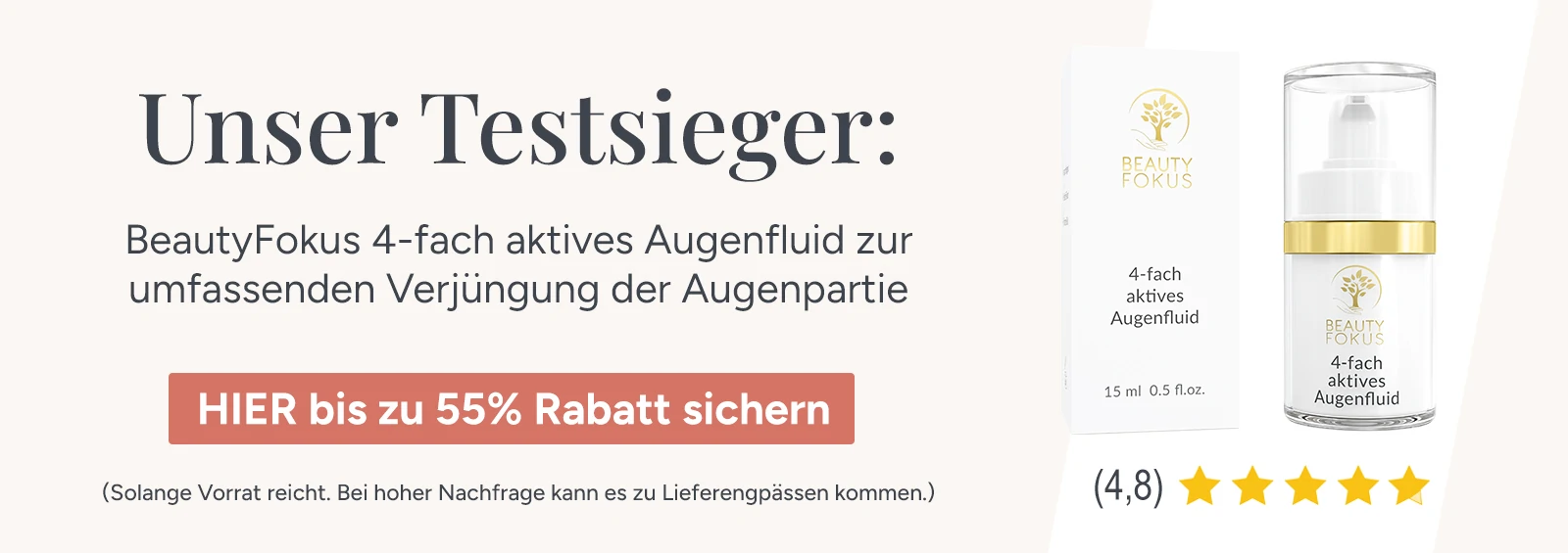 Überzeugt? Dann probieren Sie jetzt unseren Testsieger BeautyFokus 4-fach aktives Augenfluid aus – das einzige Produkt, das alle vier Probleme der Augenpartie umfassend angeht, einschließlich hängender Augenlider.