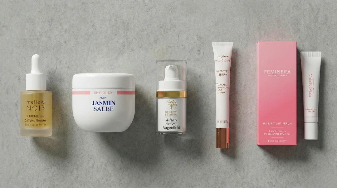 Wir haben 14 der bekanntesten Augencremes und -seren auf dem deutschen Markt – darunter Produkte von mellow NOIR, Biovolen, BeautyFokus, KU2, Bionera, M. Asam, Vitavelle, Spilanthox, Remescar und Feminera – genauer unter die Lupe genommen.